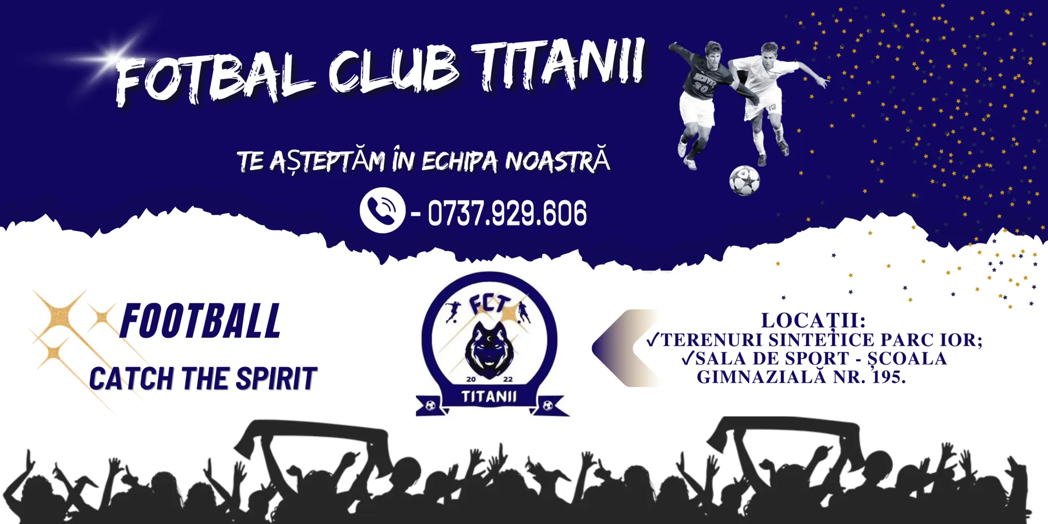 FC Titanii, un club de fotbal formator, cu o metodologie bazată pe joc și joacă, formată dintr-un staff tânăr, te invită în echipă pentru a beneficia de o dezvoltare fizică armonioasă